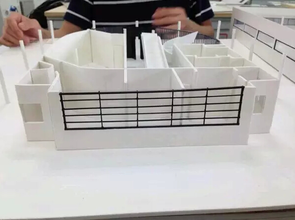 之前看到隈研吾大師v&a at dundee的渲染圖,當時就被美到了,在archidaily和筑龍網上down了圖紙。(結果做完了發現原建筑還沒有竣工…汗顏)因為我們想做白色的建筑,雪浮板又容易受傷,噴漆的話連接處會有瑕疵,所以我們選擇了abs板…一種新型塑料,充電寶外殼的材質,非常硬.....建筑外殼是隈研吾大師一貫的間隙風格,所以三個妹子把十多塊板用美工刀劃成條,不說了都是淚…